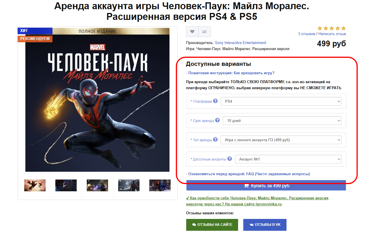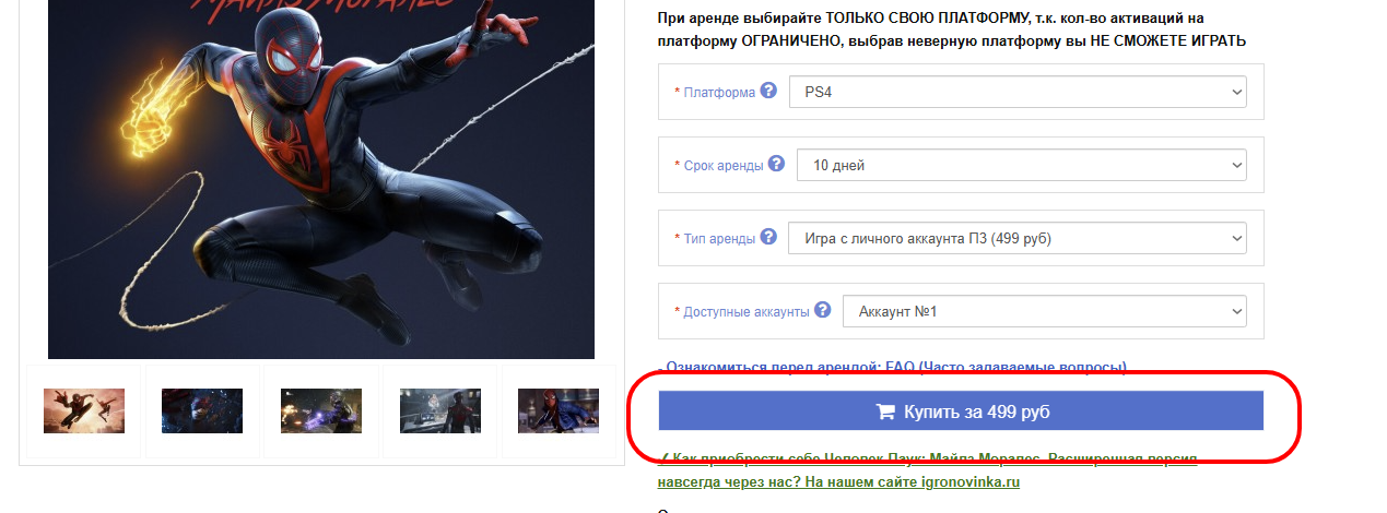 - Срок аренды: На какое время вы хотите арендовать игру, у каждой игры минимальный и максимальный срок может разнится
