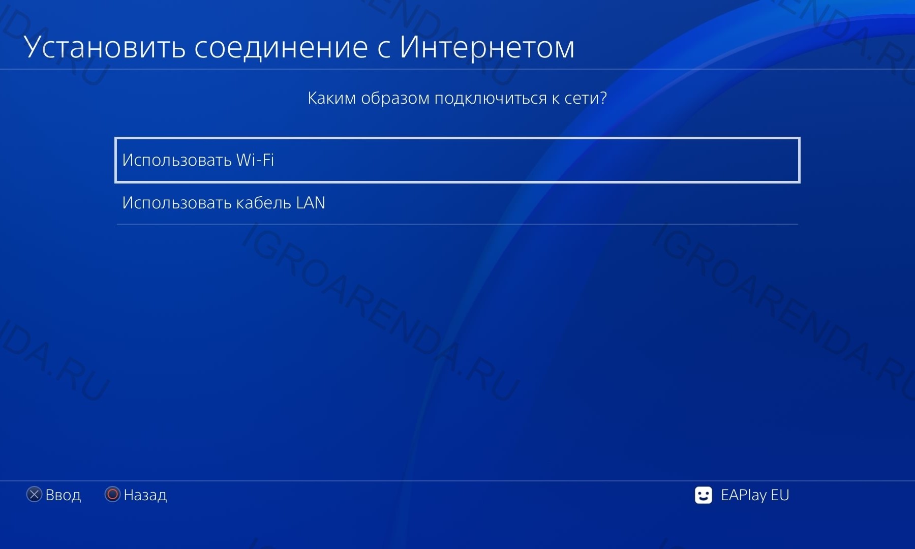 3. Выбираем между Использовать Wi-Fi или Использовать кабель LAN, в зависимости от того, как мы подключили PS4 к Интернету.